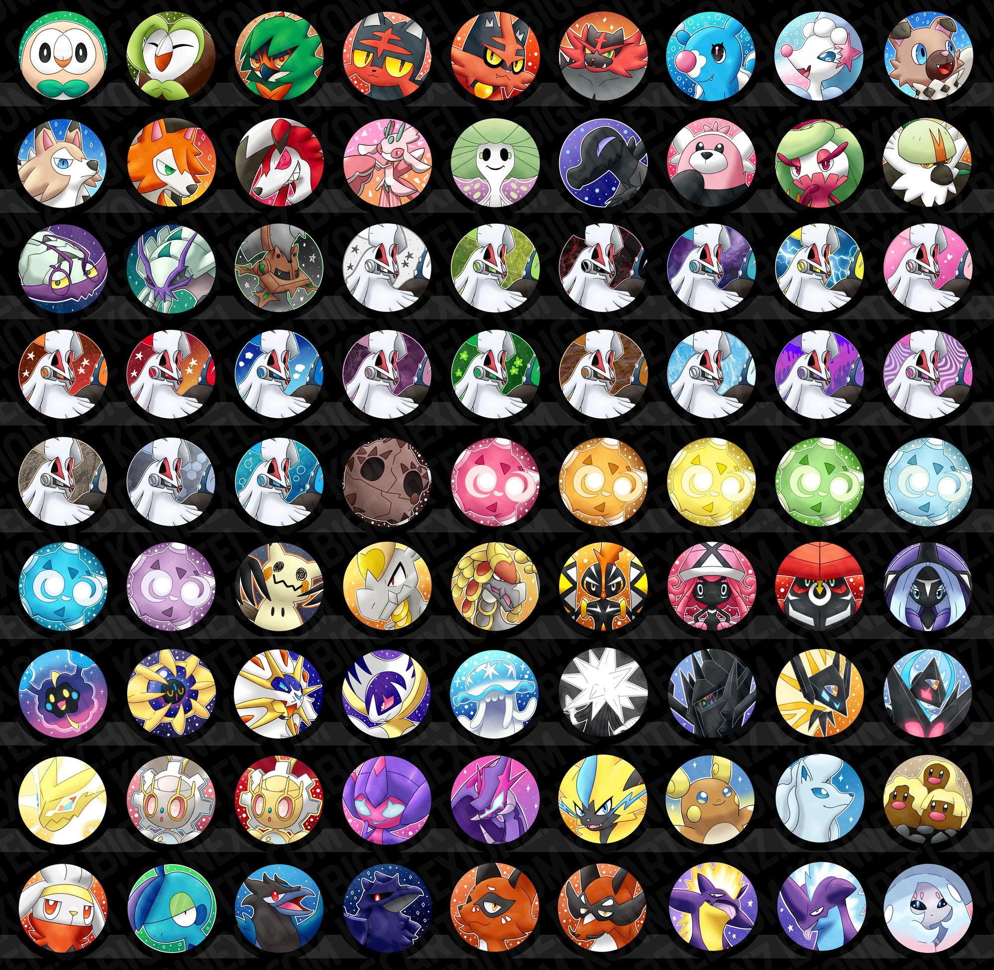 Rowlet, Dartrix, Decidueye, Litten, Torracat, Incineroar, Brionne, Primarina, Rockruff, Lycanroc (Midday), Lycanroc (Dusk), Lycanroc (Midnight), Lurantis, Shiinotic, Salandit, Bewear, Tsareena, Passimian, Wimpod, Golisopod, Type: Null, Silvally (Normal, Bug, Dark, Dragon, Electric, Fairy, Fighting, Fire, Flying, Ghost, Grass, Ground, Ice, Poison, Psychic, Rock, Steel, Water), Minior (Meteor, Pink, Orange, Yellow, Green, Blue, Indigo, Purple), Mimikyu, Hakamo-o, Kommo-o, Tapu Koko, Tapu Lele, Tapu Bulu, Tapu Fini, Cosmog, Cosmoem, Solgaleo, Lunala, Nihilego, Xurkitree, Necrozma, Necrozma (Dusk Mane), Necrozma (Dawn Wings), Necrozma (Ultra), Magearna, Magearna (Original), Poipole, Naganadel, Zeraora, Alolan Raichu, Alolan Ninetales, Alolan Dugtrio, Raboot, Drizzile, Corvisquire, Corviknight, Nickit, Thievul, Toxtricity (Amped), Toxtricity (Low-Key), Hatterene, Morgrem, Grimmsnarl, Obstagoon, Galarian Corsola, Cursola, Alcremie, Frosmoth, Indeedee (Male), Indeedee (Female), Dracozolt, Arctozolt, Dracovish, Zacian (Hero), Zacian (Crowned), Zamazenta (Hero), Zamazenta (Crowned), EMAX Eternatus, Zarude, Glastrier, Spectrier, Galarian Slowbro, Galarian Articuno, Galarian Zapdos, Galarian Moltres, GMAX Charizard, GMAX Butterfree, GMAX Corviknight, GMAX Flapple/Appletun, GMAX Toxtricity, GMAX Hatterene, GMAX Grimmsnarl, GMAX Alcremie, Hisuian Decidueye, Hisuian Typhlosion, Hisuian Samurott, Hisuian Growlithe, Hisuian Arcanine, Hisuian Voltorb, Hisuian Electrode, Hisuian Qwilfish, Overqwil, Hisuian Sneasel, Sneasler, Hisuian Lilligant Basculin (White), Basculegion (Male), Basculegion (Female), Hisuian Zorua, Hisuian Zoroark, Hisuian Braviary, Hisuian Sliggoo, Hisuian Goodra, Hisuian Avalugg, Wyrdeer, Kleavor, Ursaluna, Dialga (Origin), Palkia (Origin), Enamorus (Incarnate), Enamorus (Therian)