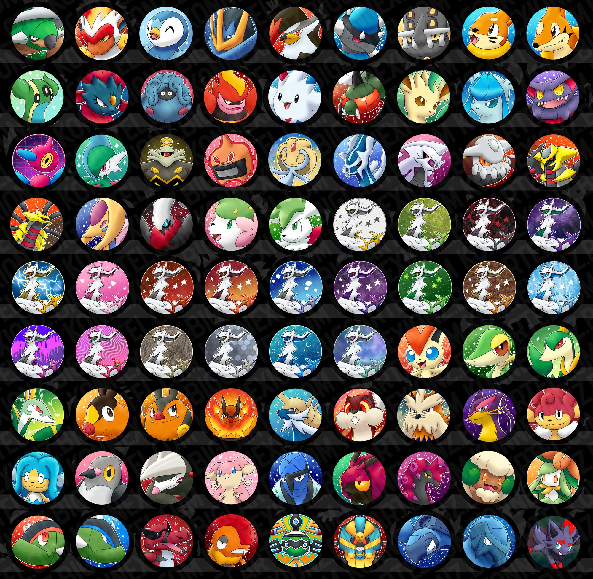 Torterra, Infernape, Piplup, Empoleon, Staraptor, Rampardos, Bastiodon, Buizel, Floatzel, Gastrodon (East), Gastrodon (West), Ambipom, Lopunny, Honchkrow, Skuntank, Gabite, Garchomp, Riolu, Lucario, Weavile, Tangrowth, Magmortar, Togekiss, Yanmega, Leafeon, Glaceon, Gliscor, Porygon-Z, Gallade, Dusknoir, Rotom (Heat), Uxie, Dialga, Palkia, Heatran, Giratina (Altered), Giratina (Origin), Cresselia, Darkrai, Shaymin, Shaymin (Sky), Arceus (Normal), Arceus (Bug), Arceus (Dark), Arceus (Dragon), Arceus (Electric), Arceus (Fairy), Arceus (Fighting), Arceus (Fire), Arceus (Flying), Arceus (Ghost), Arceus (Grass), Arceus (Ground), Arceus (Ice), Arceus (Poison), Arceus (Psychic), Arceus (Rock), Arceus (Steel), Arceus (Water), Arceus (Unknown), Victini, Snivy, Servine, Serperior, Tepig, Pignite, Emboar, Samurott, Watchog, Stoutland, Liepard, Simisear, Simipour, Pidove, Excadrill, Audino, Sawk, Venipede, Scolipede, Whimsicott, Lilligant, Basculin (Red), Basculin (Blue), Krookodile, Scrafty, Sigilyph, Cofagrigus, Tirtouga, Carracosta, Archen, Archeops, Zorua, Zoroark, Cinccino, Reuniclus, Ducklett, Escavalier, Joltik, Galvantula, Eelektross, Beheeyem, Axew, Fraxure, Haxorus, Accelgor, Mienshao, Druddigon, Golett, Golurk, Bisharp, Braviary, Vullaby, Mandibuzz, Heatmor, Larvesta, Volcarona, Cobalion, Terrakion, Virizion, Tornadus (Incarnate), Tornadus (Therian), Thundurus (Incarnate), Thundurus (Therian), Reshiram, Zekrom, Landorus (Incarnate), Landorus (Therian), Kyurem, Black Kyurem, White Kyurem, Keldeo (Ordinary), Keldeo (Resolute), Meloetta (Aria), Meloetta (Pirouette), Genesect